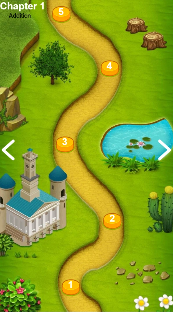 Created a story-based game where two characters (boy & girl) grow through life stages while solving math problems.