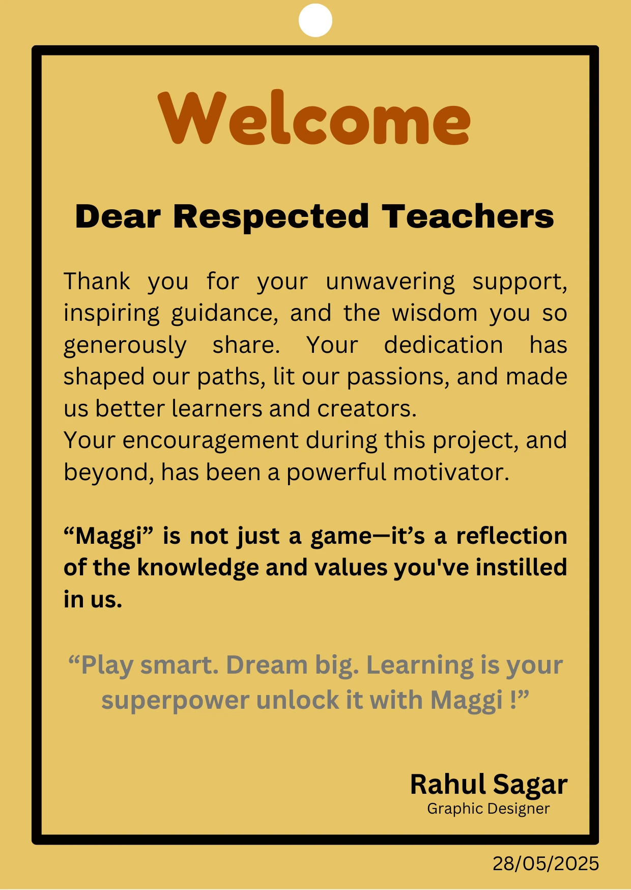 MAGGI is an interactive educational game designed for children aged 3–10. It blends storytelling, mathematics, and real-life challenges into a playful learning experience. The platform focuses on cognitive growth, emotional connection, and progressive learning through character evolution.