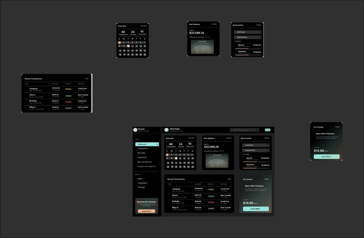 - Financial overview cards